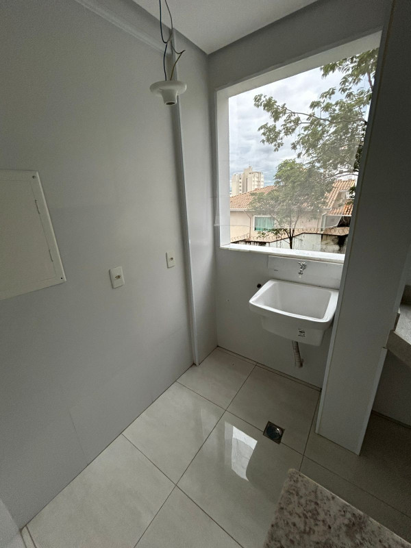 A cozinha é toda em porcelanato, funcional e bem distribuída, integrada à área de serviço.